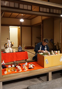 5月21日(日)、墨田区のお店を拠点に活動されている伝統工芸の職人さんによる実演とワークショップを開催しました。まず、実演は塚田詠春さんの木目込人形。体験住宅の六畳間に大型の歌舞伎人形からかわいらしい豆雛、犬張子、小箱などさまざまな作品を展示していただき、仕事場が華やぎました。お客様からの質問にも笑顔で答えておられました。