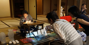 常設展示室で見学中のお客様が次々と訪れ、時には職人さんとお話をしながら、伝統の技に見入っておられました。塚田さん、塩澤さん、有難うございました。