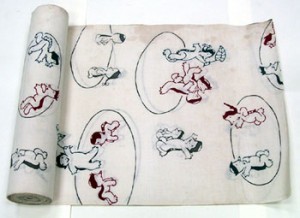 戦後、『週刊朝日』に連載した「かっぱ天国」ほか、かっぱを主人公にした漫画は、ほのぼのとしたユーモアとペーソスで人気を博し、日本酒のコマーシャルをはじめ多くの場面に出没しました。そして東京都にも、「大東京祭記念バッジ」として昭和30年代から40年代にかけ、都民の日にはかわいらしいポーズで人々の胸元や帽子を飾り、動物園や植物園に現れました。