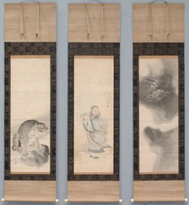 東方朔龍虎図 寛政2年(1790) 絹本墨画淡彩 3幅対 個人蔵