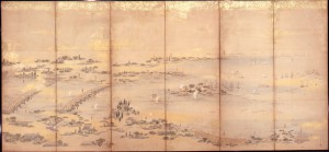 また浅草寺(せんそうじ)の本尊聖観音像(ほんぞんしょうかんのんぞう)は、推古天皇(すいこてんのう)36年(628)に、宮戸川(みやとがわ)(隅田川)で漁をしていた3人の漁師の網にかかったものだと「縁起」にあります。江戸時代初期における隅田川の絵画化には、これらの場所を隅田川とともに丁寧に描いたものが多く認められます。