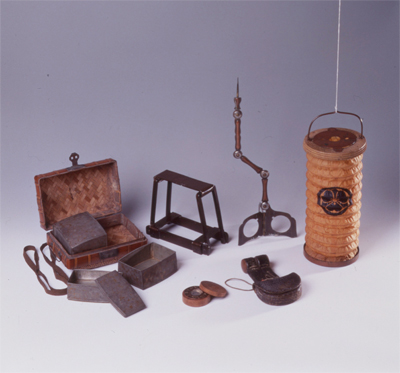 また、東海道五十三次をテーマにした出版物は、現代に至るまで、さまざまな形で出版され親しまれています。双六類や付録のカードなど、関連資料も紹介しています。あわせて旅に携帯した道具類、衣装なども展示し、江戸時代の旅の様子をお伝えします。