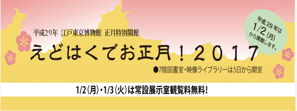 東京都江戸東京博物館(両国)では、平成29年のお正月は2日(月)から開館いたします。