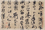 明末から清時代の初めにかけ、文字間の切れ目なく書き連ねた草書文「連綿草」が誕生しました。激情を噴きだすように筆を走らせた作品群は迫力十分です。その書人に名を連ねる黄道周(こうどうしゅう)、