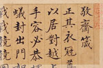 「蘭亭序」とは、永和9年(353)3月3日、王羲之が会稽(かいけい)(現・浙江省紹興市)の景勝地、蘭亭で名士42人を招いて催した曲水の宴で詠まれた詩編に、みずからがしたためた序文です。今回出品の「蘭亭序」は、唐の太宗皇帝が搨書(とうしょ)の名人馮承素(ふうしょうそ)に書き写させたもので、清時代には乾隆帝も所蔵していた、現存する肉筆本では名品中の名品とされています。