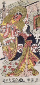 初期浮世絵版画の時代は、墨一色の墨摺絵(すみずりえ)からはじまり、主に酸化鉛である赤色「丹」を用いた筆彩版画の丹絵、植物性の赤色「紅」を用いた紅絵、膠分(にかわ)の多い墨や雲母(きら)を効果に用いた漆絵を経て、数色の色板を用いて摺刷される紅摺絵(べにずりえ)の、およそ1760年代頃までの江戸の浮世絵界を指します。元来、浮世(現実社会)を題材とする世俗画は、16世紀初頭頃から京都を中心に肉筆画で確立されました。それが、1657年(明暦3)に江戸本郷で発生した明暦の大火以後、急速な復興の中で、それまでの上方文化依存から江戸独自の文化が芽生えてゆきます。この頃、「浮世絵の祖」といわれる菱川師宣が登場し、以後、江戸の浮世絵は連綿と華やかな歴史を展開させてゆくのです。