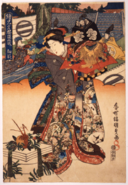 「日本人なら誰もが知っている」とまで言われる「忠臣蔵」。1701年(元禄14)3月14日江戸城中において浅野内匠頭長矩(あさのたくみのかみながのり)が吉良上野介義央(きらこうずけのすけよしひさ)を切りつけた「刃傷事件」と内匠頭の切腹、翌年12月14日夜半に赤穂浪士たちが吉良邸を襲撃して上野介の首をとった「仇討事件」。これらの忠実に基づき、脚色した物語が「仮名手本忠臣蔵」、すなわち「忠臣蔵」です。忠臣蔵は1748年(寛延1)に人形浄瑠璃として初演、その後歌舞伎狂言となりました。設定を室町時代としたこの時代物の狂言は、上演すれば必ず当る人気の演目であったことから、当時の煎じ薬になぞらえ「独参湯(どくじんとう)」(起死回生の妙薬の意)と呼ばれました。 忠臣蔵の題材は錦絵にも好んで描かれ、各段の象徴的なシーンを揃物にした舞台絵や、演じた歌舞伎俳優たちを描いた役者絵など実に多くの作品が生み出されました。