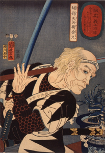 この章では、ブロマイドさながらに各々の浪士たちの雄姿を揃い物にして出版した人気のシリーズから、とくに国芳と国貞二人の作品を取り上げて紹介します。