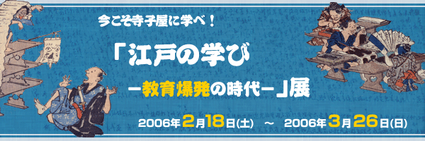 この展覧会では、多くの具体的な資料を通じて、寺子屋の実態に迫るとともに、文字の読み書き能力が普及することによって花開いた「学び」を楽しむ江戸の文化を、わかりやすく紹介します。