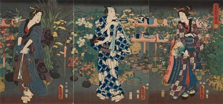 このコーナーでは、江戸の花卉園芸のなかでも特異な発展をみせた花菖蒲・朝顔・菊の三花に焦点をあてます。これらはいずれも武士が深くかかわって園芸品種の基礎をつくり、やがて植木屋がこれを受け継ぎ発展させていきました。