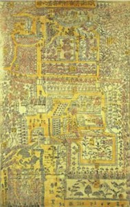 植木屋伊兵衛の庭を描いた本図には、樹木を龍虎の形に刈り込んだ現在のトピアリーなどが描き込まれています。