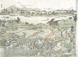 文化2年(1805)に開園した向島百花園付近を描いた鳥瞰図