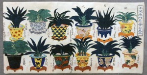 泰平の世が続く江戸社会で最初に“奇品”栽培に情熱を傾け始めたのは武士たちでした。かれらは植木鉢に入れた奇品の栽培に情熱を注ぎ、これらを持ち寄って比較して、その結果を美しい絵入りの印刷物に仕立てて仲間うちに配付しました。ここでは奇品好きの武士たちによって見いだされた植物、なかでも寛政期に一大ブームを巻き起こした橘、徳川家康との由緒を誇る常緑の縁起物として人気を博した万年青をはじめ、松葉蘭、南天、福寿草、長生草などの奇品を描いた作品を紹介します。