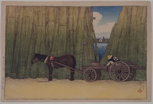 大都市、江戸東京で忙しく働いていたのは人間ばかりではありません。自動車のない時代、馬や牛は交通や物流において頼もしい働き手でした。また、人々の暮らしの節目となる行事や行楽にも、様々ないきものが活躍しています。ここでは絵画や写真、文献のなかから、働くいきものを展示します。