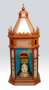 視差により、明治時代の風景写真を立体的に見せるからくり。オルゴールの伴奏とともに、ぜんまいで次々と写真が入れ替わる。