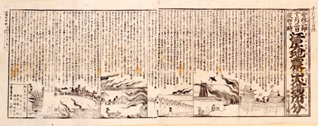 江戸時代、災害や珍事、時事的な事件が発生すると、それらは瓦版で速報されました。事件によっては何回か発行され、江戸っ子たちに詳細が伝えられました。ここでは、幕末期に起きたいくつかの事件を取り上げ、それぞれの瓦版をくらべてみます。江戸では何が起きていたのか?瓦版から事件の様子を読み取ります。