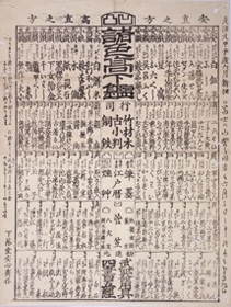 This exhibition will introduce the kinds of information that Edokko (people of Edo/ Tokyo) have and what they were interested in. On exhibit will be documents, publications and paintings that were popular in the Edo Period, “kawaraban” tabloid papers issued to cover local events, and “mitate banzuke” ranking lists, an idea borrowed from how sumo wrestlers are ranked.