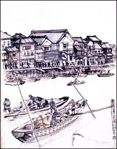 スケッチ帳(大正八年三月一日 日本橋ニテ) 奈良裕功 画