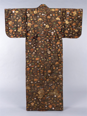 まずはじめは、新収蔵品の中で最も華やかな染織品の数々をご紹介しましょう。江戸開府から400年以上に及ぶ時代のなか、装いの形態は、まとう人の年齢や身分、用途によって、さまざまです。丁寧な手仕事により仕立てられた衣装は、当初の姿から形を変えながらも大切に遺されている場合があります。染や織り、施された刺繍の技術から、暮らしに美をまとう意識の高さがうかがえます。現代の生活とは異なる各時代の様式を背景に誕生した、装いのデザインをご紹介します。