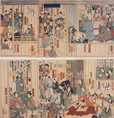 人びとが集う都市、江戸東京では、歌舞伎や落語などさまざまな芸能が花開きました。京都で始まった歌舞伎は江戸で独自の発展を遂げ、平成の今日まで連綿と興行が続いています。人口の多い東京は、日本一劇場の多い都市です。時代とともに内容を変えていく劇場、創建時から性格のほとんど変らない劇場など、東京ならではの多彩さに満ちています。この章では、錦絵・番付・チラシ・パンフレットなどの資料により、芸能と劇場の様相をご紹介します。