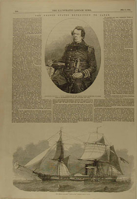 1854年(嘉永7)、ペリーの2度目の日本来航により、アメリカと江戸幕府との間に日米和親条約が締結されました。幕末日本の国内では、黒船やペリーの肖像画を描いた瓦版などが印刷され、市井に広がりました。