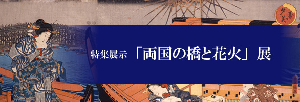 2009年、両国橋は創架350年の節目の年を迎えます。1659年(万治2)に竣工を祝う「渡り初め」が行われて以来、両国橋は災害や老朽化に伴い幾度も架け替えられてきました。とくに明治以降の両国橋は、洋風の木橋から鉄橋、現在の鋼鉄桁橋とそのかたちを大きく変えていきます。当館所蔵の錦絵や写真によって、両国橋をかたちの移り変わりに注目して展示します。 また江戸時代の両国橋界隈は、多くの見世物小屋や屋台が立ち並び、活気あふれる盛り場として親しまれていました。川開き以降夏が終わるまでは、納涼や花火を楽しむ多くの人々が集いました。これは隅田川花火大会の原型となり、現在も毎年100万人近い人出で賑わいます。今回の特集では、江戸時代から現代までの両国橋の移り変わりを花火とともに紹介し、創架350年を飾ります。