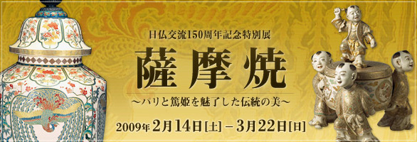 世界に「SATSUMA」の名で知られる薩摩焼は、1867年(慶応3)の第2回パリ万国博覧会に出展され、ヨーロッパで高い評価を得ました。それから 140年目にあたる2007年、これを記念した展覧会「薩摩焼パリ伝統美展」が、世界最高峰の陶磁器専門美術館として知られるフランス国立陶磁器美術館(セーブル美術館)で開かれ、好評を博しました。 本展では、このフランス国立陶磁器美術館で出品された作品を中心に、400年の歴史を誇る薩摩焼の優品約200点を紹介します。 薩摩といえば篤姫を思い出される方も多い事と思いますが、薩摩焼は、篤姫の義父島津斉彬の集成館事業でも力を入れたものの一つであり、篤姫もまた、磯の別邸の藩窯で焼かれた香炉や置物などの薩摩焼を所有していました。 日仏修好条約によって日本とフランスの交流がはじまってから150周年(2008年現在)。篤姫も愛した400年の伝統の美をぜひお楽しみください。