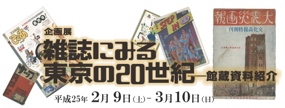 この展覧会では、当館が所蔵する雑誌を展示し、雑誌の歴史と同時に、そこに現れた近代東京の社会や文化、人々の生活を紹介します。