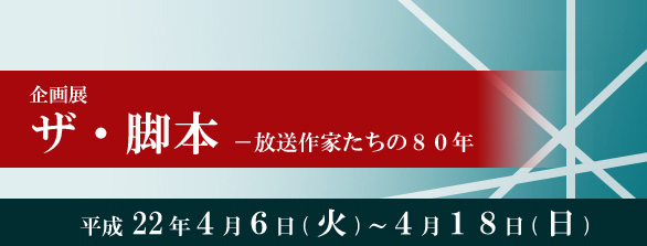 初めに脚本ありき。 どんな放送番組も脚本がなければ始まりません。大正時代に誕生したラジオはお茶の間の主役になり、昭和のテレビの誕生は日本テレビ「光子の窓」が「イグアノドンの卵」と予言しました。 放送作家をはじめ番組の作り手にとって、テレビは「おおきなおもちゃ」ともいわれました。今回の企画展は、そんな草創期のラジオ・テレビ脚本から最近の「坂の上の雲」まで、脚本によって時代を振り返る試みです。 向田邦子、森繁久彌を回顧する特別展示もいたします。