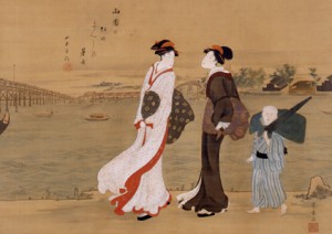 そして隅田川に弧を描いて架かる大きな橋は、隅田川の流れのアクセントとなり、さまざまな人が行き交う橋の上のようすは格好の風俗画の画題ともなりました。ここでは隅田川の光景がどのような切り口で描かれているのか、さまざまな視点から紹介します。