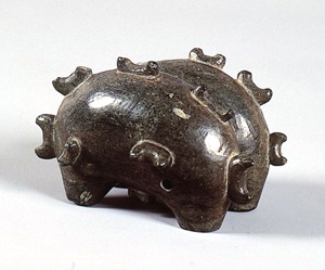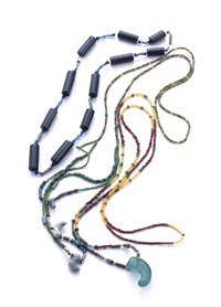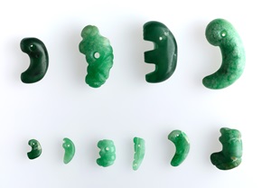 中国では新石器時代(龍山文化、BC2000頃)からヒスイを中心とした硬玉・軟玉を珍重する文化があり、一般に「玉(ギョク)」といえば美しい石材で作られた様々な器財を指します。必ずしも身につける装身具ではありません。