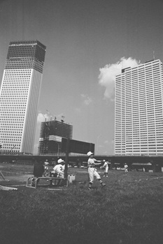 高度経済成長期を迎え発展を続ける東京には企業が集中し、就業人口も増加を続けていきました。そして過密する都心の機能を分散すべく、新宿など新たな副都心の開発が進められました。新宿には、1970年代より超高層ビルが次々と建設され、1990年(平成2)には現在の東京都庁舎が竣工し、首都機能の一翼を担うようになります。また、1980~90年代には臨海副都心の開発も行われました。本章では、高度経済成長期から現代に至るまでの東京の主な都市整備と景観の変化を、映像や空撮写真から見ていきます。