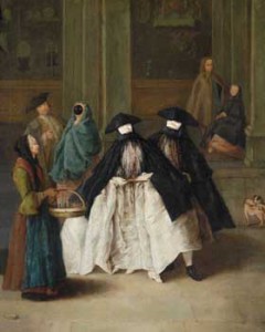 黄金期を迎えたヴェネツィア人の生活、華麗なる日々を紹介いたします。カナル・グランデ(大運河)の両岸に並ぶ豪奢なパラッツォ(邸館)。そこでくりひろげられためくるめく非日常的生活は、ロンギなどの画家によって優雅に描かれています。また織物や香水、履き物、レース編み、とりわけヴェネツィアンガラスは極めて洗練され、輝かしい成功をおさめました。