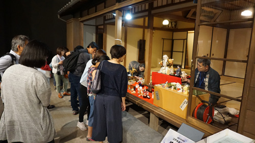 5月21日(日)、墨田区のお店を拠点に活動されている伝統工芸の職人さんによる実演とワークショップを開催しました。まず、実演は塚田詠春さんの木目込人形。体験住宅の六畳間に大型の歌舞伎人形からかわいらしい豆雛、犬張子、小箱などさまざまな作品を展示していただき、仕事場が華やぎました。お客様からの質問にも笑顔で答えておられました。